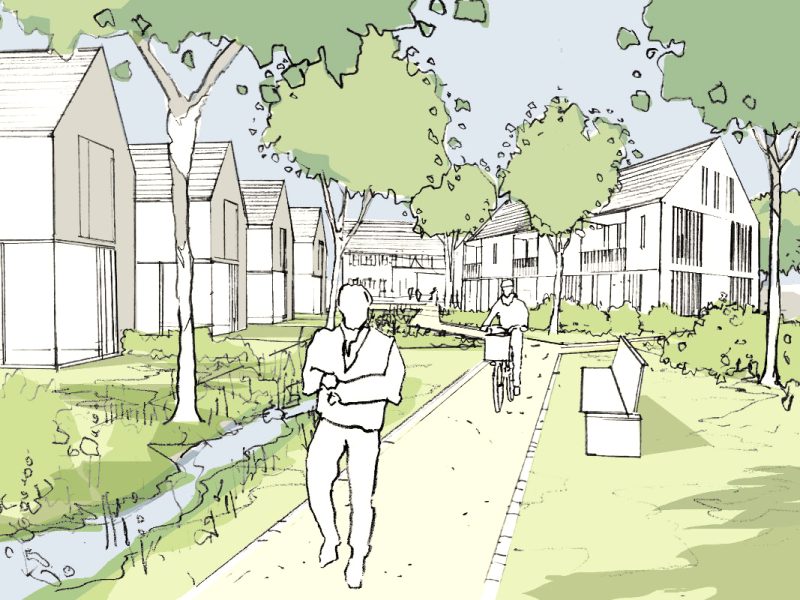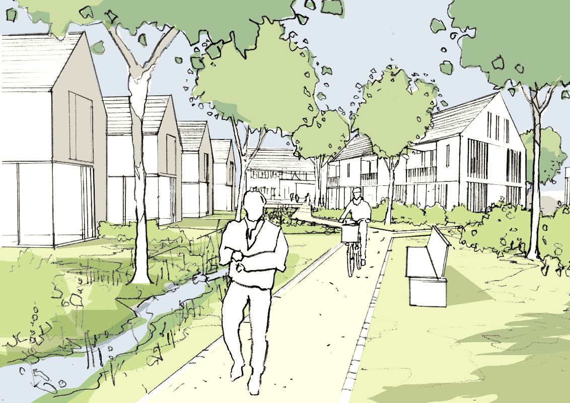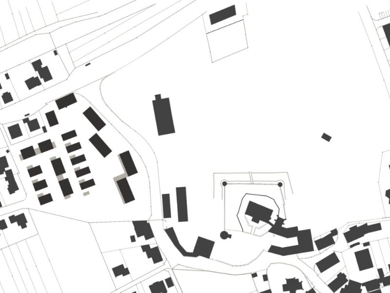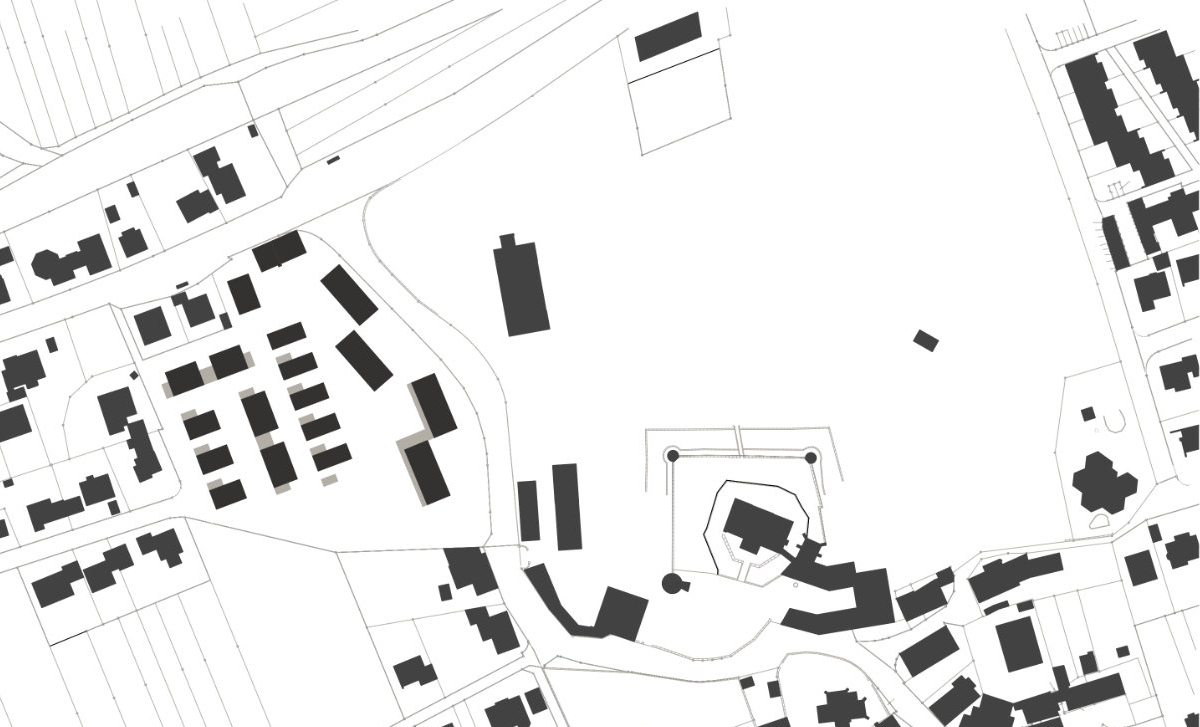 Die geplante Neuordnung eröffnet die Chance, aus den beschriebenen Prägungen eine vermittelnde und zugleich eigenständige städtebauliche Figur zu erschaffen. Die Blickbeziehung zum Schloss soll dabei nicht nur von der Lescherstraße, sondern gerahmt durch offene Bebauung auch von der Bahnhofstraße und insbesondere aus dem neuen Quartier selber Bestand haben. Ziel ist auch die Revitalisierung und Ergänzung des Bauernhauses als identitätsstiftender Ort für neue Bewohnergemeinschaft und alteingesessene Nachbarschaft gleichermaßen, von dem sich ein beständig verbreiternder Grünzug nach Süden in Richtung Ortsmitte entwickelt und zur freien Landschaft öffnet. Er ist gesäumt von der Wohnbebauung: